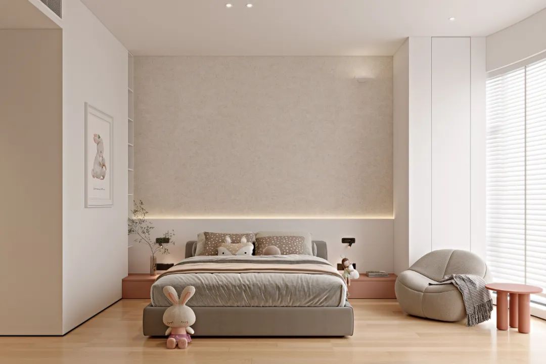 男孩可以選擇淡藍色、女孩可以選擇淡粉色,而淡黃色的墻面,也是比較適合兒童房,除了墻面還有床墊、家具與細節(jié)的布置,也可以根據(jù)孩子喜歡的元素來布置。
